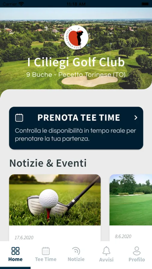 L'app permette di prenotare le partenze al golf club I Ciliegi direttamente dal tuo smartphone.