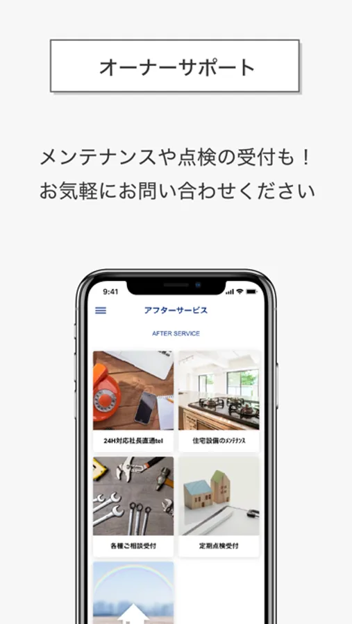 メンテナンスのお申し込みができるとともに、イベント情報などの日程もいち早く知ることができます。住まいの疑問・質問などがあればお問い合わせからお気軽にご相談ください。