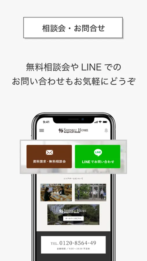 このアプリは、そんな私たちシンクホームと家づくりを行ったオーナー様へのアフターサービス向上と、これから家を建てるお客様にシンクホームの家づくりをわかりやすく伝えるために開発しました。