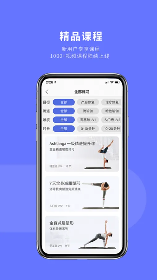 -如果您肩颈有问题,可以先习练「脊柱理疗打造计划」,如果您想腿型塑造的,可进行「瑜伽矫正腿型」的课程习练。针对不同的需求可在APP搜索相应的课程进行习练。