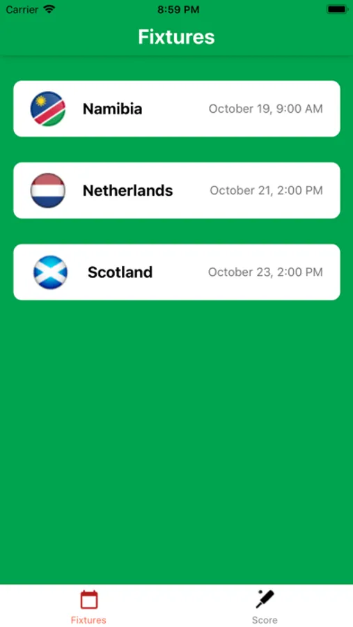 - Notifications for scheduled matches and important match events (wickets, 4s, 6s).