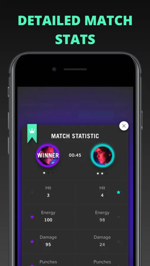 Step into the game with the augmented-reality Battle Mode, which records your battles and displays health bars, punches, hits and damage in real time. Just like being in a fighting game, but safe and painless.