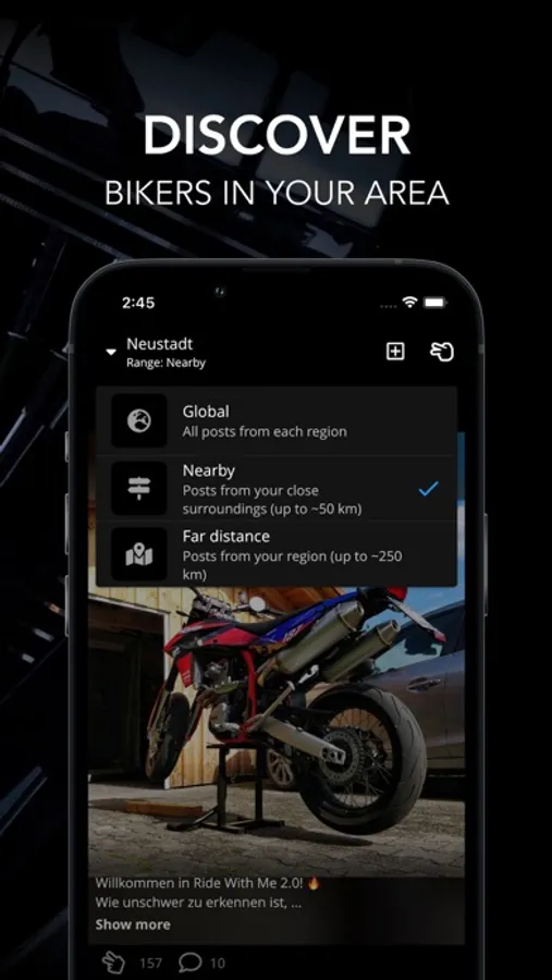 No matter when you want to ride: plan your ride with just a few clicks and invite all your friends. Finally, you can track your route with the integrated route recording (GPS). Afterwards, you can share the ride in the feed and compare your stats.