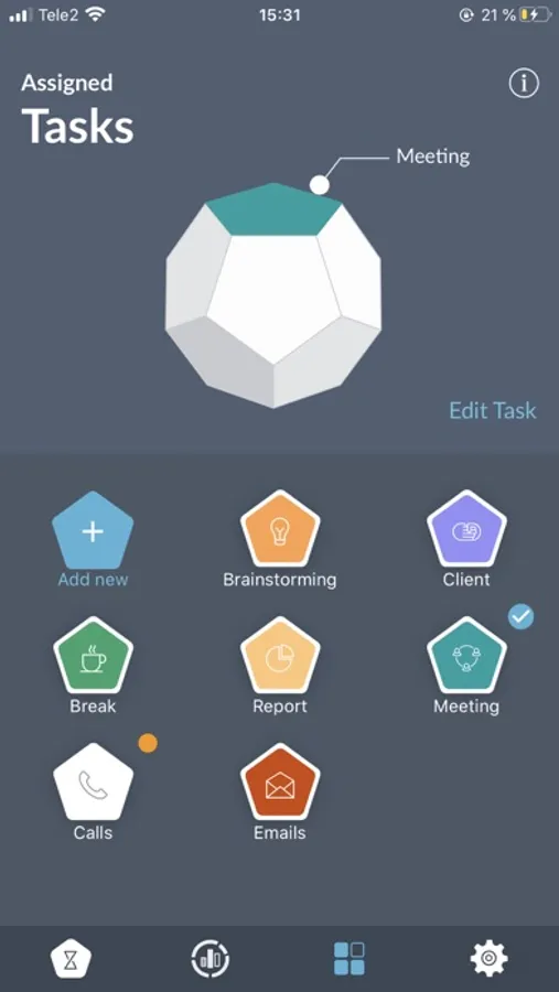 At the start, user marks TIMEFLIP2 sides with the tasks or activities he/she wants to track and assigns them once in the mobile app. Whenever one wants to start tracking a task or activity, he/she simply places TIMEFLIP2 with the corresponding side facing up and the device automatically starts clocking time for it. Thus, all user time stats is logged and visualized in the app or web service and can be exported in xls or csv format.