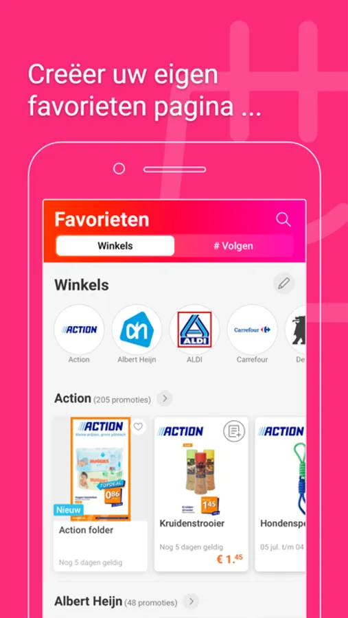 - Opslaan van aanbiedingen en maken van een eigen boodschappenlijstje.
