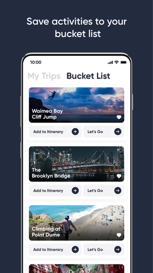 - Save Activities to your Bucket List