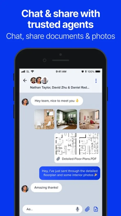 You can upload and share your properties on the platform, so other agents in your network have access to the photos and details of the shared properties. Like any other platform, you get to communicate and share files and documents with other agents, and the history of your communication is securely saved in one place.