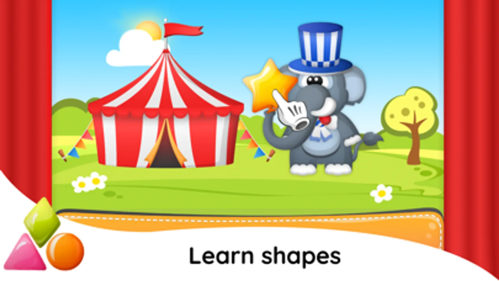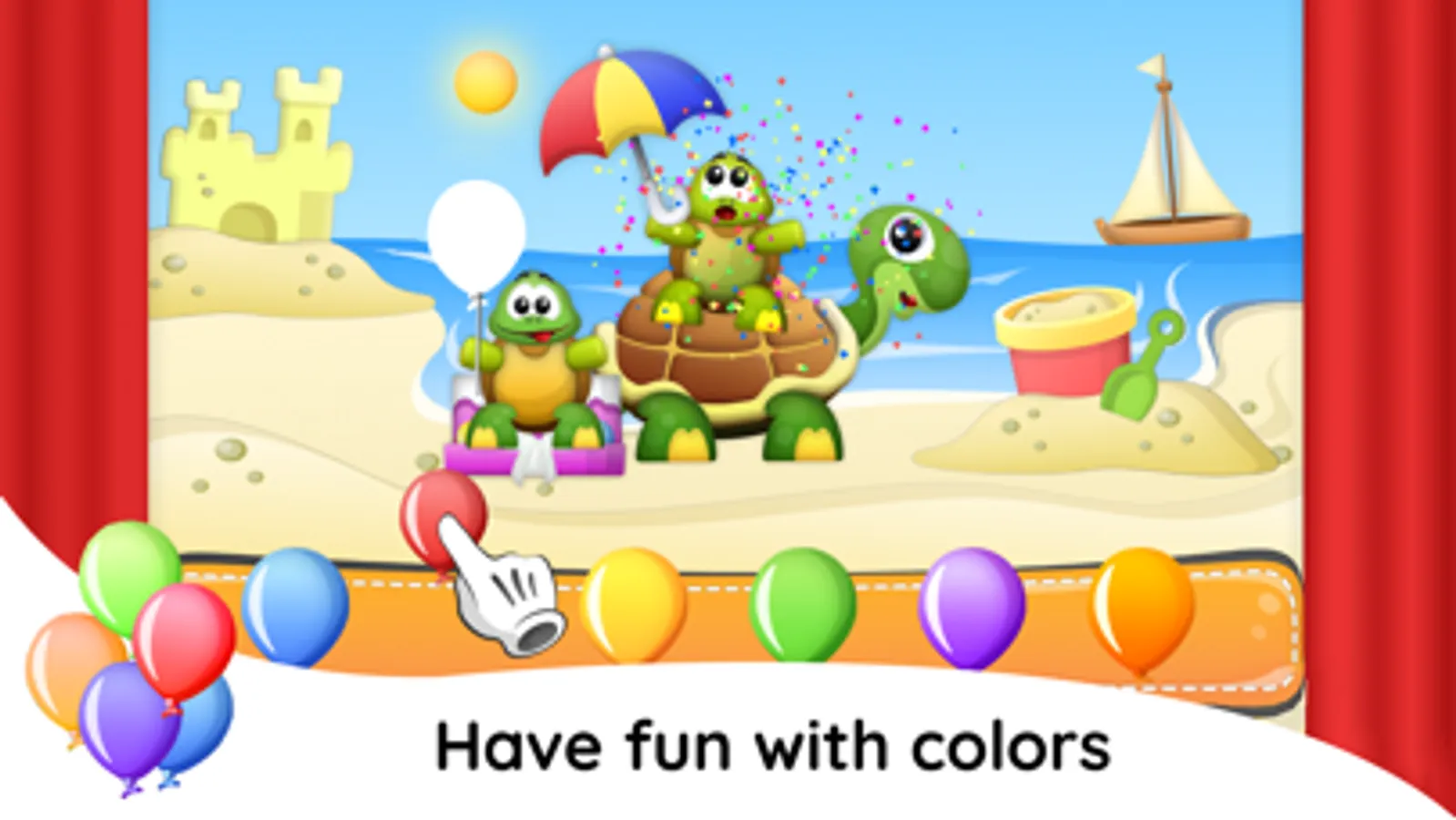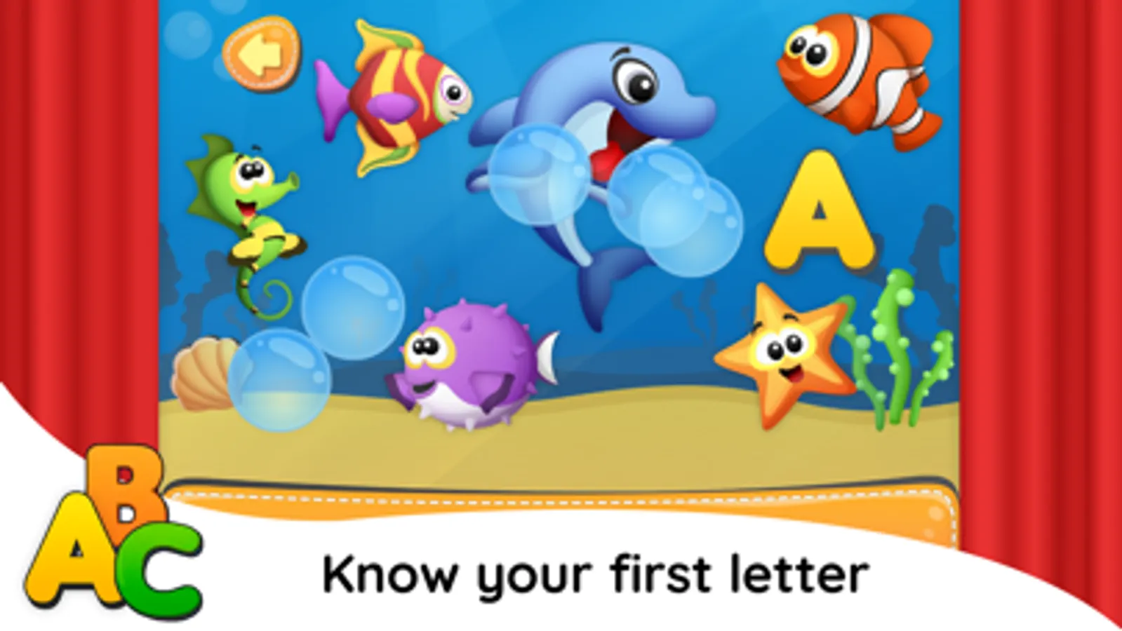 Cute little friends will help your kids discover various locations like beach, kitchen, circus, underwater life. Kids will learn their first letters & numbers, play with shapes & colors!