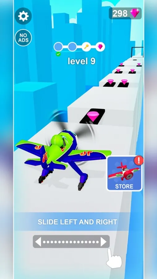 Control the skating planes by dragging fingers left to right and avoid crashing. Control the skates attached to the plane to avoid any hit and have a safe flight.