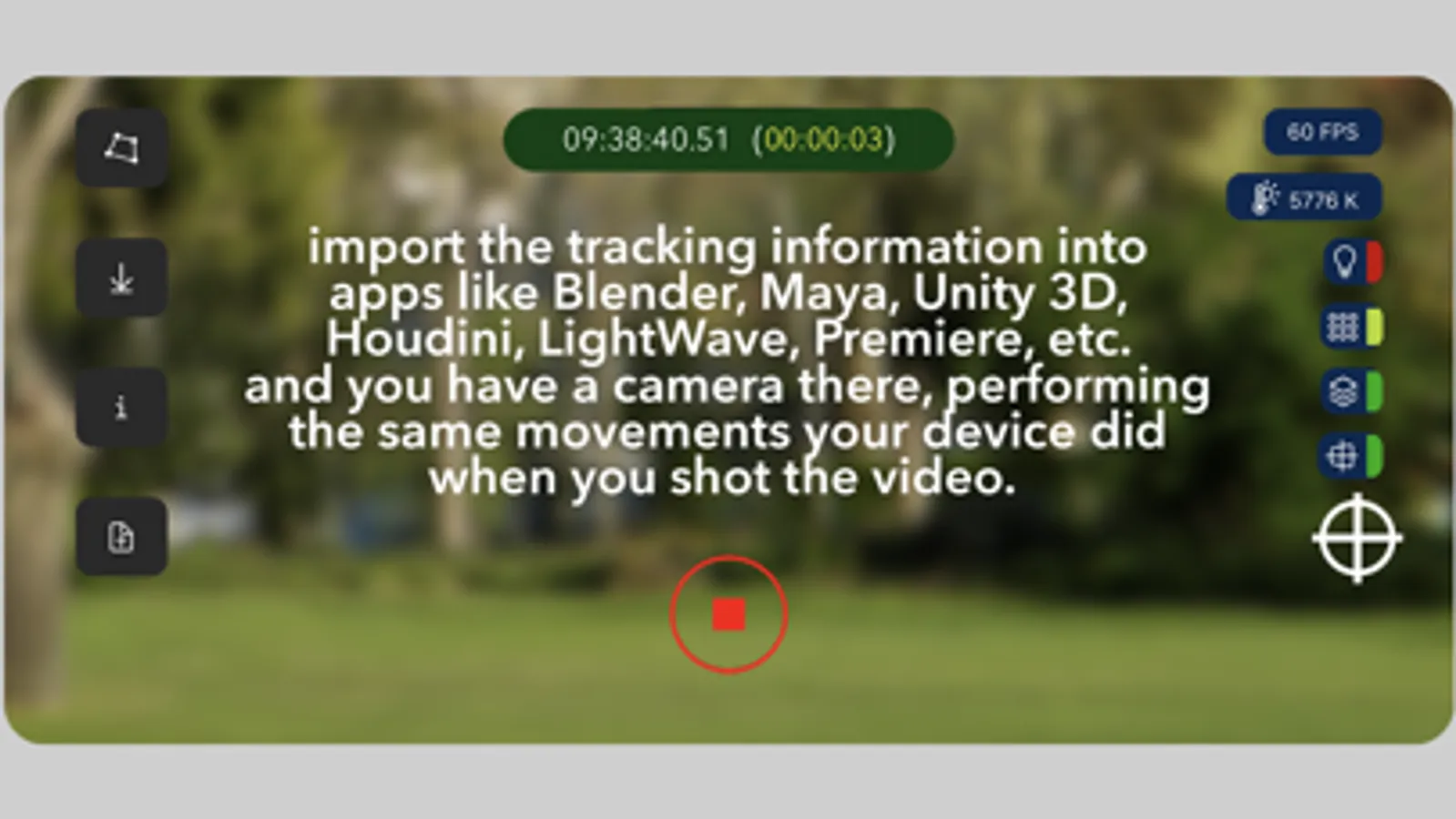 Professional rotation and translation camera tracking application for the 3D, Game, Film and Television industries. Suitable for any 3D app like Blender, Maya, 3DS Max, LightWave, Cinema 4D, Houdini, Unity 3D, Adobe Premiere and many others.