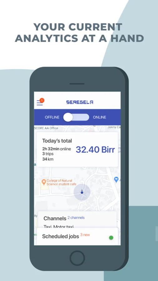 Seregela's ride-hailing app provides taxi services in Addis Ababa, Ethiopia. We match customers looking for a ride with available Seregela drivers in the area. The app enables passengers to send a trip request for Seregela taxis of which the closest driver in our network accepts, then picks up the passenger and delivers them to their desired location.