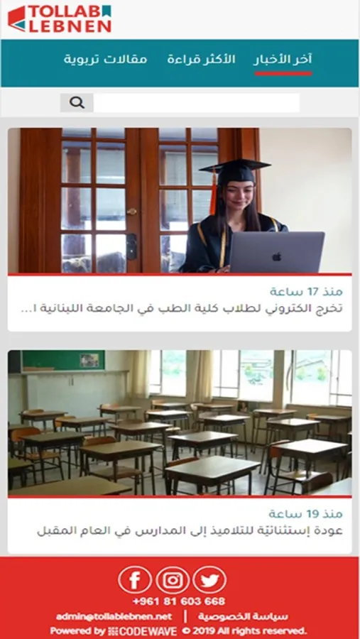 This application is related to the TollabLebnen site, it sends the latest news related for the Education in Lebanon