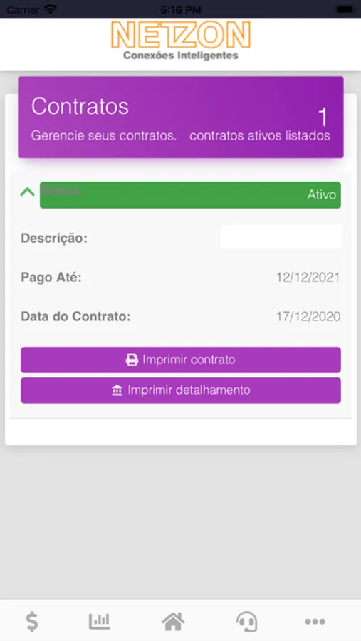 Aplicativo para consultar e efetuar o pagamento das suas faturas, solicitar atendimentos ao suporte, fazer desbloqueio, verificar o seu consumo de banda, entre outros.