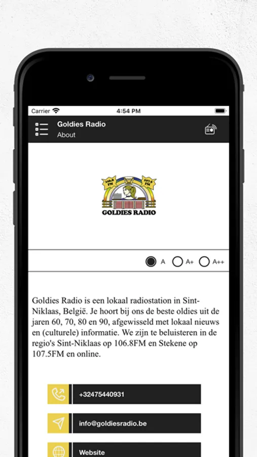 Goldies Radio is een lokaal radiostation in Sint-Niklaas, België. Je hoort bij ons de beste oldies uit de jaren 60, 70, 80 en 90, afgewisseld met lokaal nieuws en (culturele) informatie. We zijn te beluisteren in de regio's Sint-Niklaas op 106.8FM en Stekene op 107.5FM en online.
