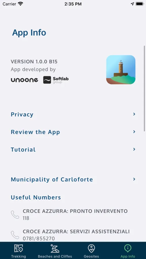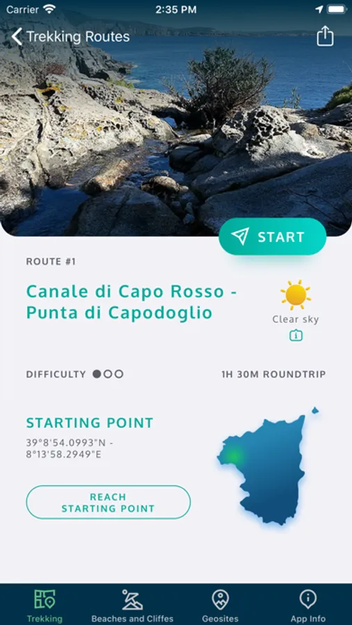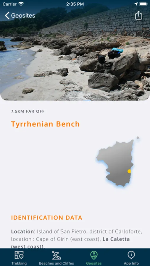 Trekking San Pietro is the App of the Municipality of Carloforte to discover trekking routes, reach the beaches and visit the geosites of the Island of San Pietro.