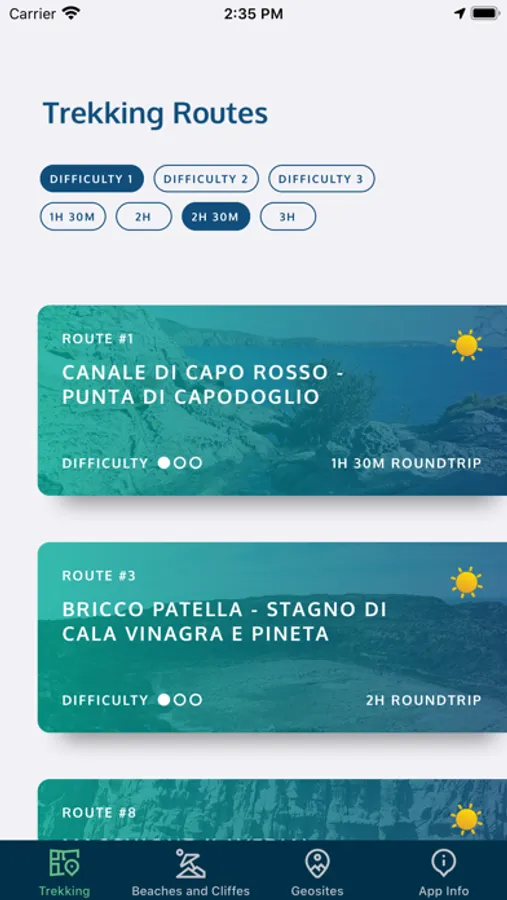 • BEACHES AND CLIFFS: reach the wonderful beaches and cliffs of San Pietro Island. The app offers the list of beaches and recommends the best one based on the weather and wind of the day.