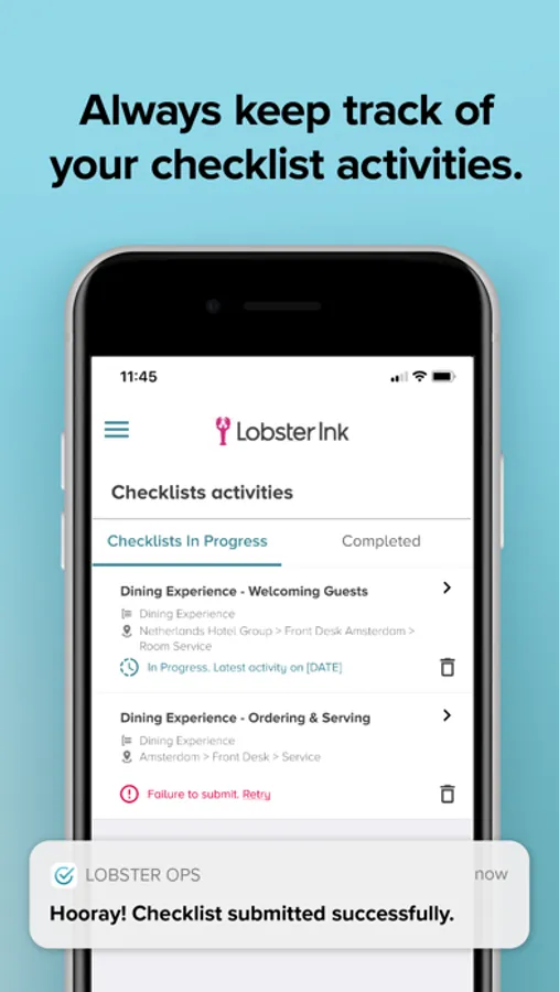 Lobster Ops makes it simple for brands to champion operational excellence through internal and external audits. Through checklists conducted by teams on the frontline, it enables action-oriented insights that help maintain consistent brand standards, mitigate risk, and prepare for any upcoming audit.