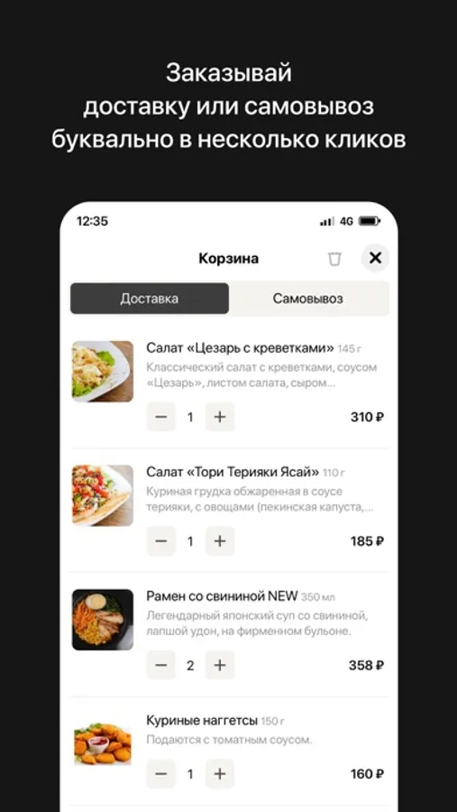 — Быстрый заказ с мгновенным подтверждением через приложение.