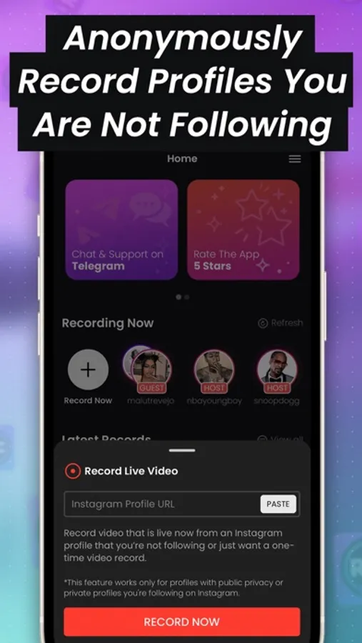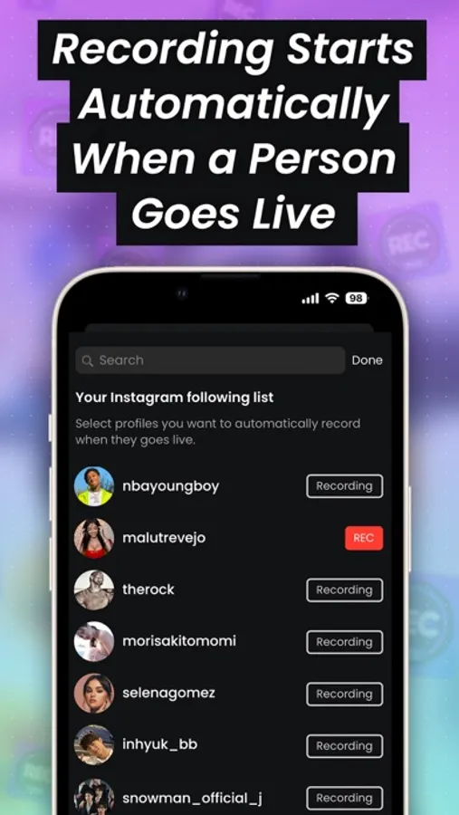 Use GREC to easily record live videos simultaneously from multiple Instagram profiles!