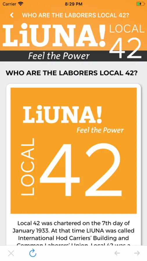 "Laborers Local 42 mobile app is designed to educate, engage and empower our Members. This app is to be used as a tool to better understand the benefits available to our Members working in the Industry. This app is only available to Laborers Local 42 Members.