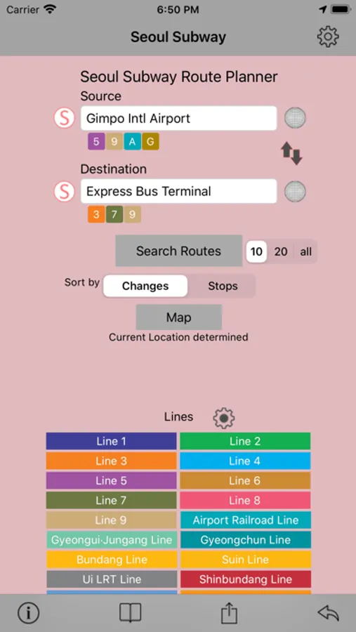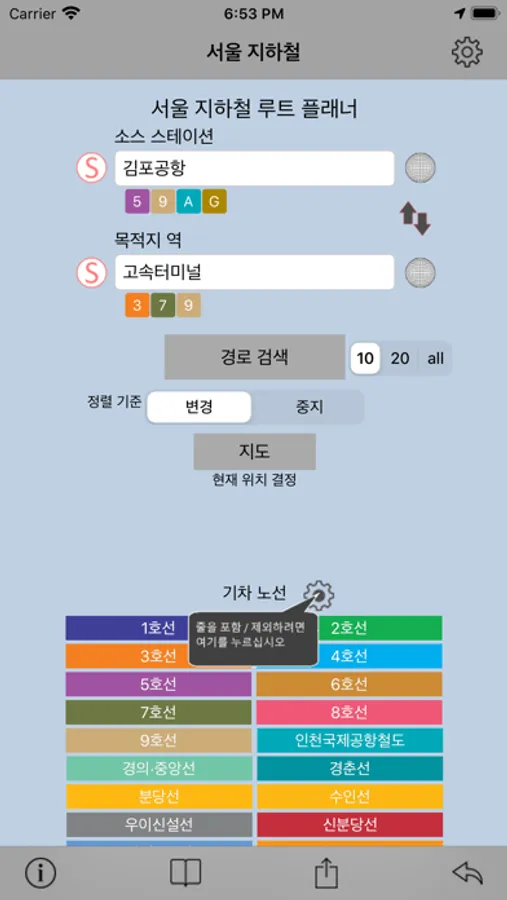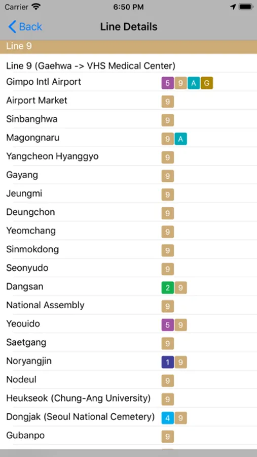 You can also view the detailed station list for each metro train line in Seoul. You can long tap on any station name from the list to see it on online maps.
