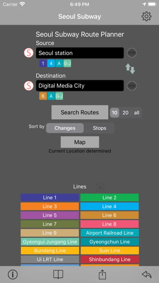 This App helps you to find train routes which can be used to travel from one location to another in Seoul city.