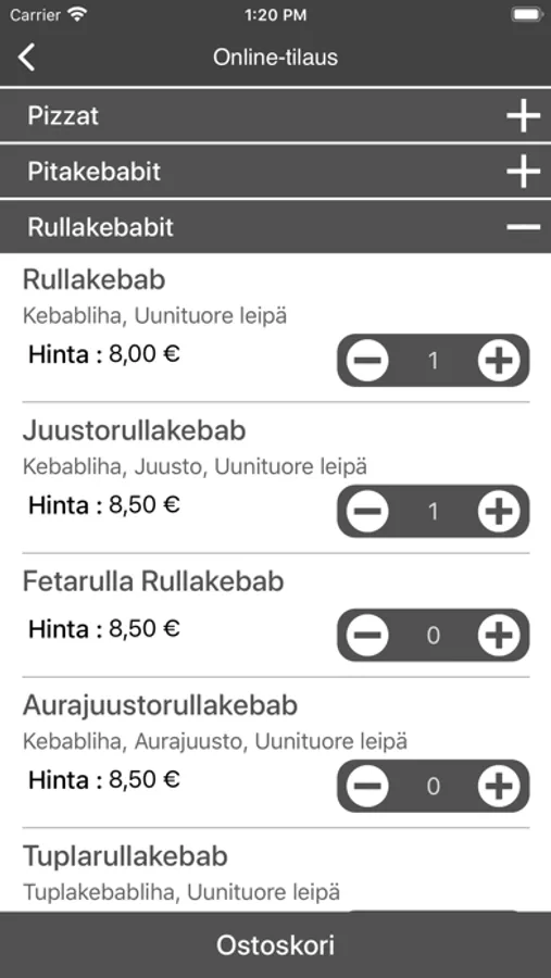 Tilaa Pizzat ja Pitakebabit noutona tai kotiinkuljetettuna. Tarjontaamme kuuluvat Pizzat, Pitakebabit, Rullakebabit, Kanarullat, Kebabannokset, Muut, Salaatit, Hot Wings, Falafelit ja Juomat.