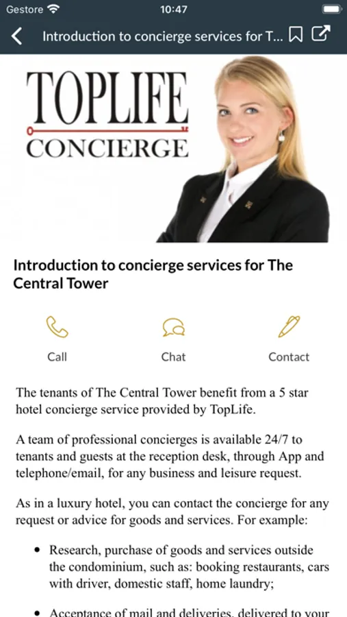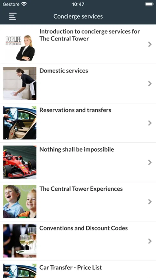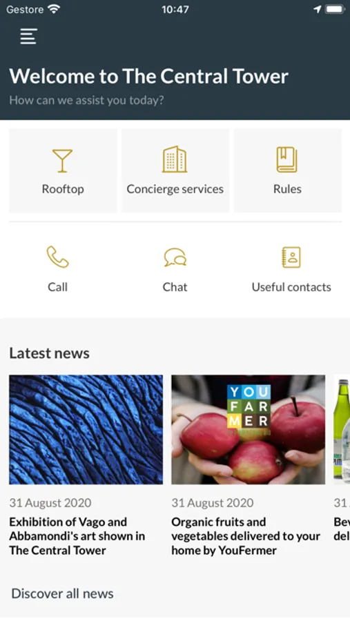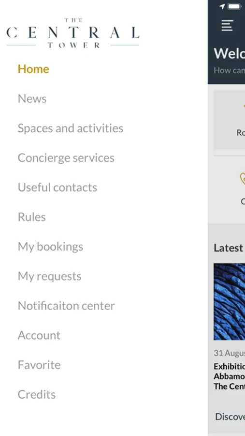 App for visualising services, activities and spaces inside The Central Tower, making reservations and contacting the concierge.