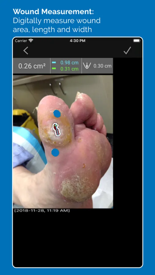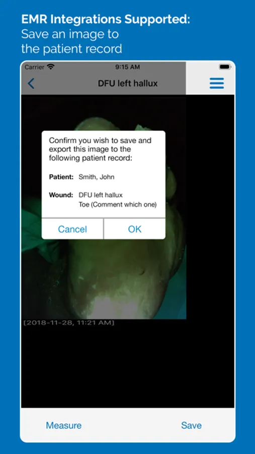 The iX Imaging app allows users to integrate their MolecuLight i:X device with 3rd party Electronic Medical Record systems. The iX Imaging app also provides users with on-device image interpretation resources.