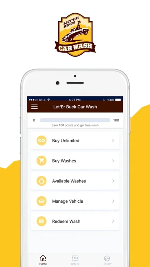 Download the Let'Er Buck Car Wash App to redeem your free car wash. Join the Club as a member from anywhere. This app allows users to directly manage their unlimited plan, purchase single washes online, and send washes to friends and family.