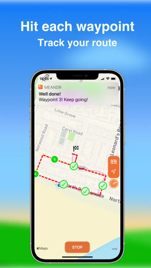 * As you get to each waypoint, you’ll get a notification and see it ticked off on the map
