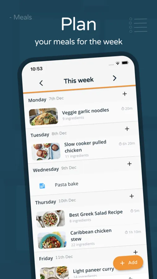 Keep your recipes organized. Use the meal planner to create weekly meal plans. Create shopping lists with ease and cook from your own recipe book.