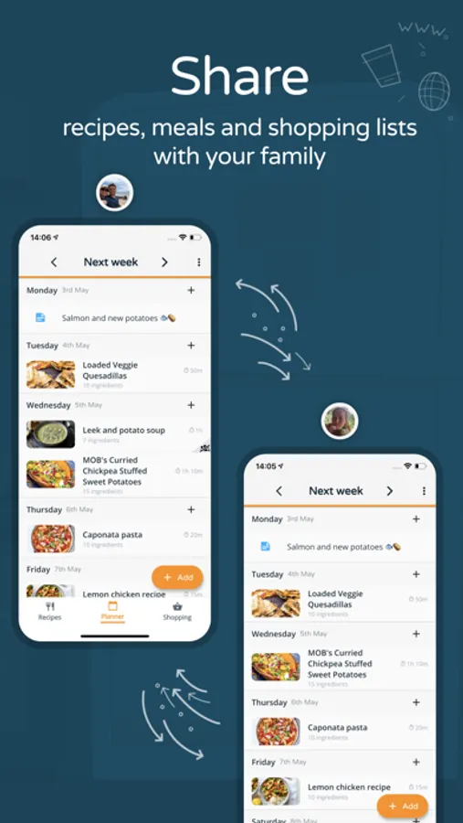 What's on the menu today? Check your weekly meal planner. Prepare meal plans and organize your week. Rearrange based on what you fancy that day. Add notes to ensure you remember to use those leftovers or your plans to eat out. Stashcook can also help save money and decrease food waste by reducing your weekly shopping list to only what you need.