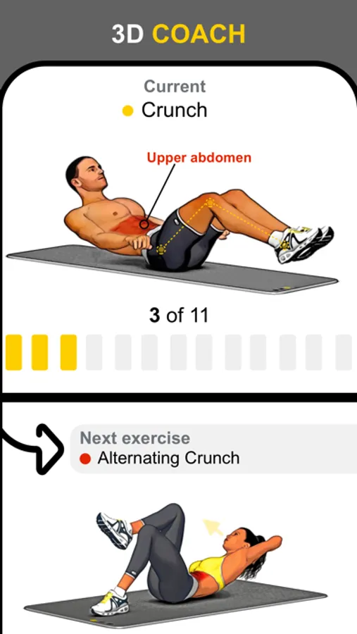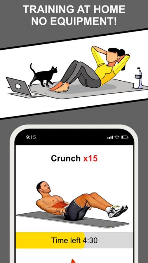 - Workouts developed by real personal trainers to train every area of your abdomen: lower abs, upper abs, and lateral abs.