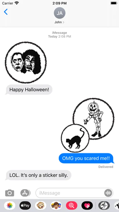 Make this Halloween something to remember with some creepy stickers. Use your stickers to scare people, spread holiday spirit, or just adding some flair to your texts. Enclosed in this sticker pack are 35 original images. Perfect for expressing yourself and making texts more interactive, all stickers come ready to send. Just tap or drag your desired sticker into a text stream and let the party begin.