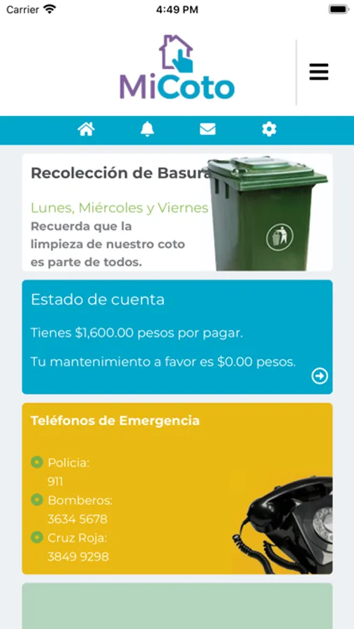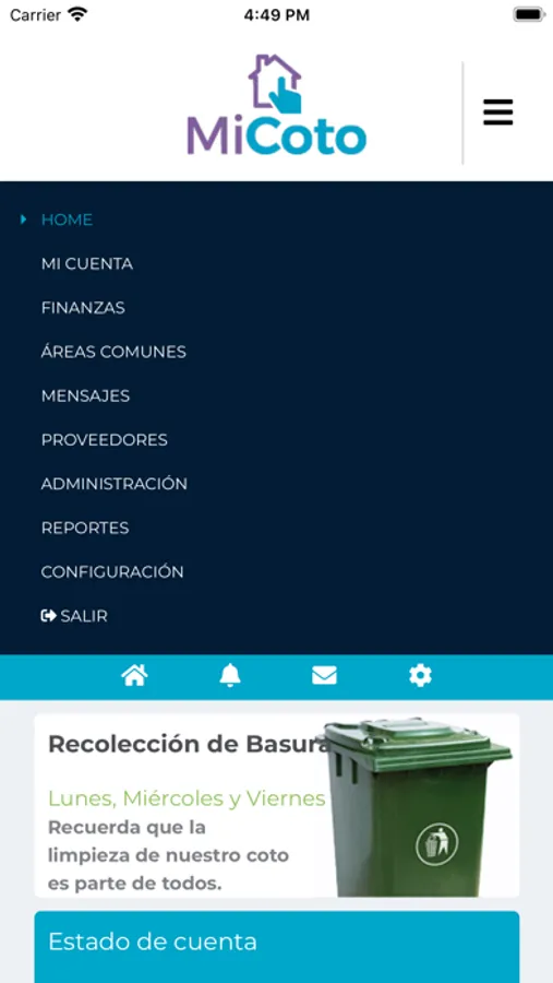 Mi Coto es una plataforma que permite a los administradores de condominios administrar todo lo relacionado con residentes, pagos mensuales y anuales, tarifas, áreas comunes, informes, mensajes, anuncios globales, reglas e información que se pueden usar y compartir con toda la comunidad.