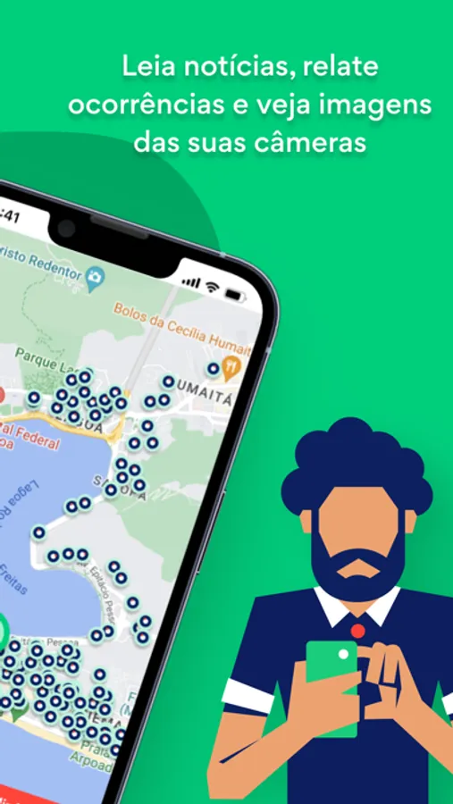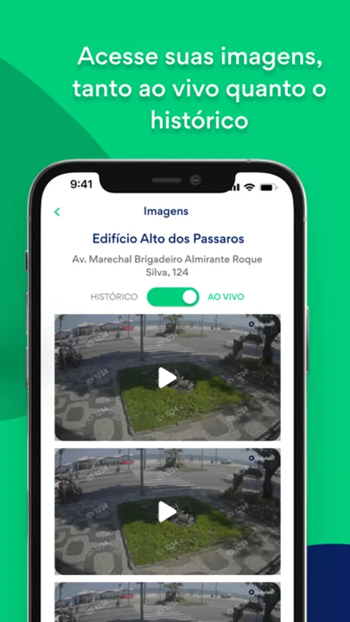 Também é possível fazer relatos de ocorrências e assistir às imagens das câmeras instaladas no seu imóvel, ao vivo ou salvas no histórico de gravações.
