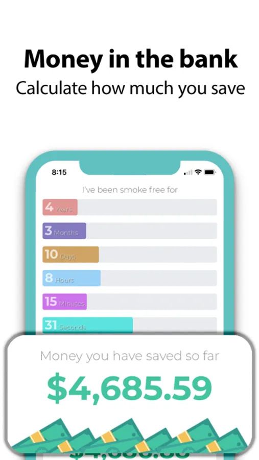 8. Our built in money calculator will show you how much money you have saved since quitting