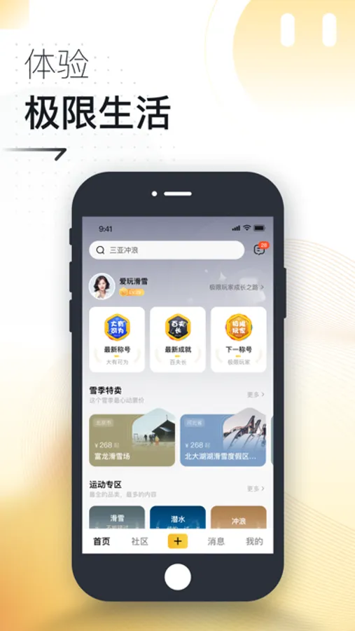 围绕轻极限生活,像朋友圈一样便捷地发布极限运动生活中的所见所想,和酷炫的人一起分享;