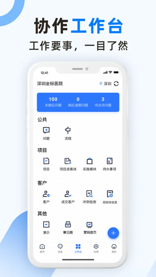 【诊疗工作台】APP配置了专业的工作管理功能,包括工作任务提醒、报表统计、患者评价查看等信息展示,让医生在繁忙的医疗工作中,更好地管理工作内容。