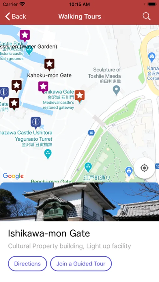 The Kaga Hyakumangoku Excursion Route App lets you stroll, sightsee and learn about a collection of historical buildings, gardens and cultural facilities found in the central area of Kanazawa.
