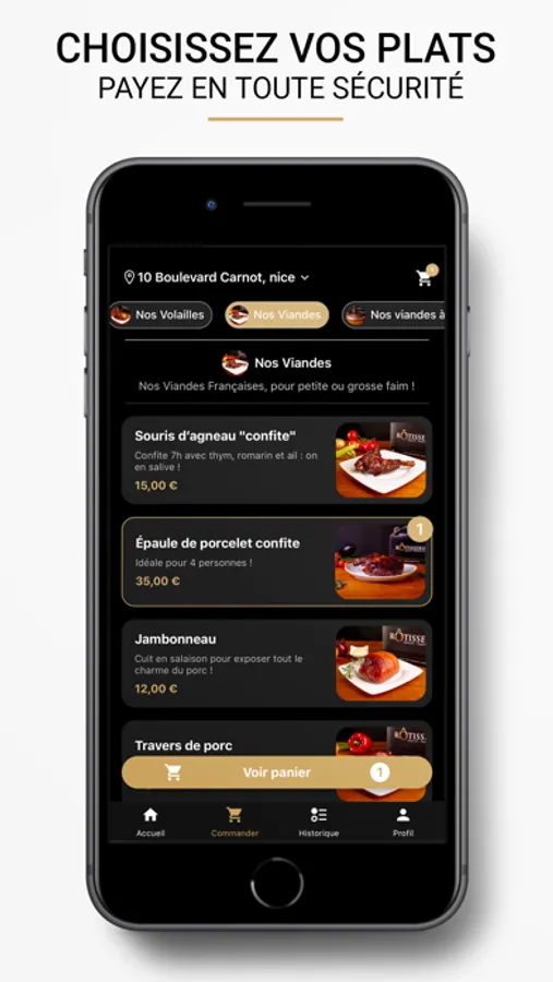 Chez Rôtisserie, vous trouverez des viandes et volailles rôties de qualité. Des produits frais, choisis avec plus grand soin, bio dès que possible et cuisinés maison : Poulet rôti, selle d'agneau, travers de porc.., à accompagner de gratin de légumes, ratatouille, gratin dauphinois, pommes de terre ou légumes frais poêlés.