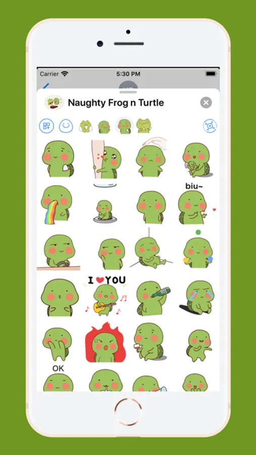 ● Super set of 95 animated stickers of the Naughty Frog n Turtle!