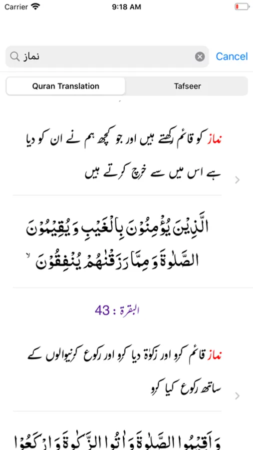 - Now user can Read full Sarah without translation in "Mushaf Mode"