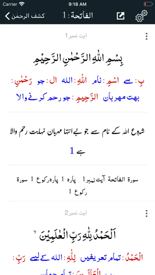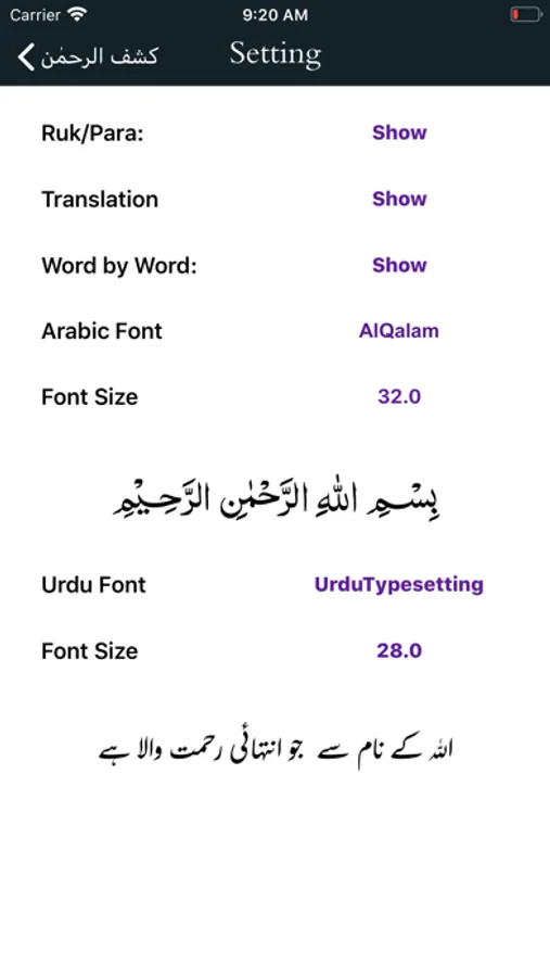- Ability to show/hide Word by Word, Quran Translation (Tarjuma)