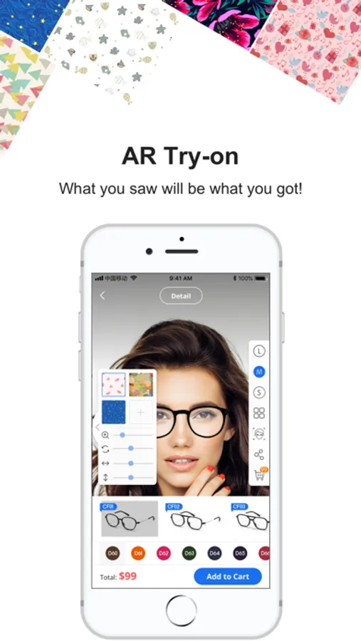 World's first 3D-printed eyewear with customized pattern and color. By AR try-on, you can get what you saw as you want.