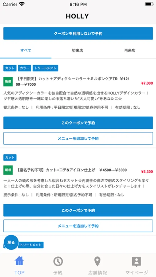 お得なクーポンが配信されます。ネット予約時にクーポン利用での予約も可能なので来店時もスムーズに施術頂けます。