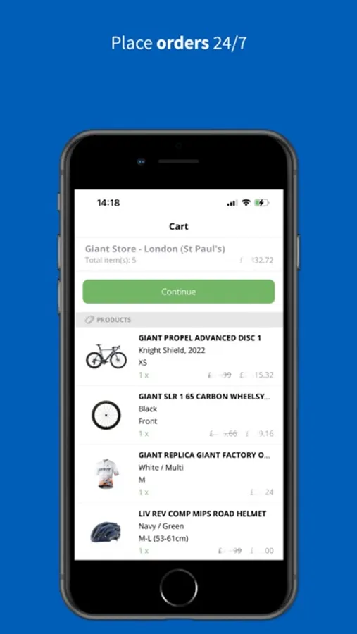 Bike stores can use the Giant Retailer App to browse and order products from the brands Giant, Liv, Momentum and CADEX.