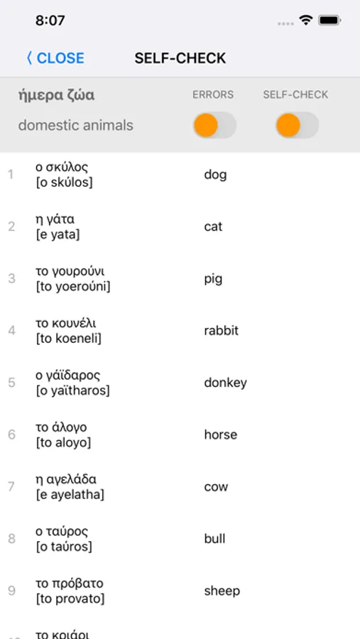 - Testing of the knowledge of the words happens through fun and simple tests: