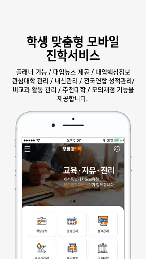 ※ 오케이진학 앱의 모든 서비스는 제주특별자치도교육청 홈페이지(https://jinhak.jje.go.kr) 계정으로 가입 후 이용가능합니다.